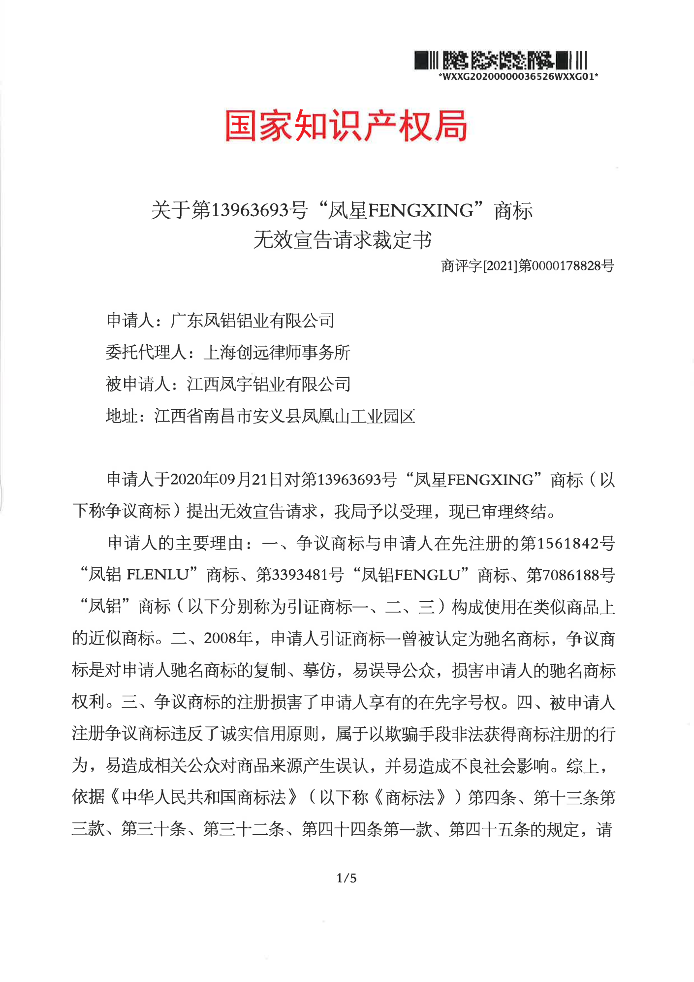 来宾辉知队 | 国家知识产权局:“凤星”商标无效