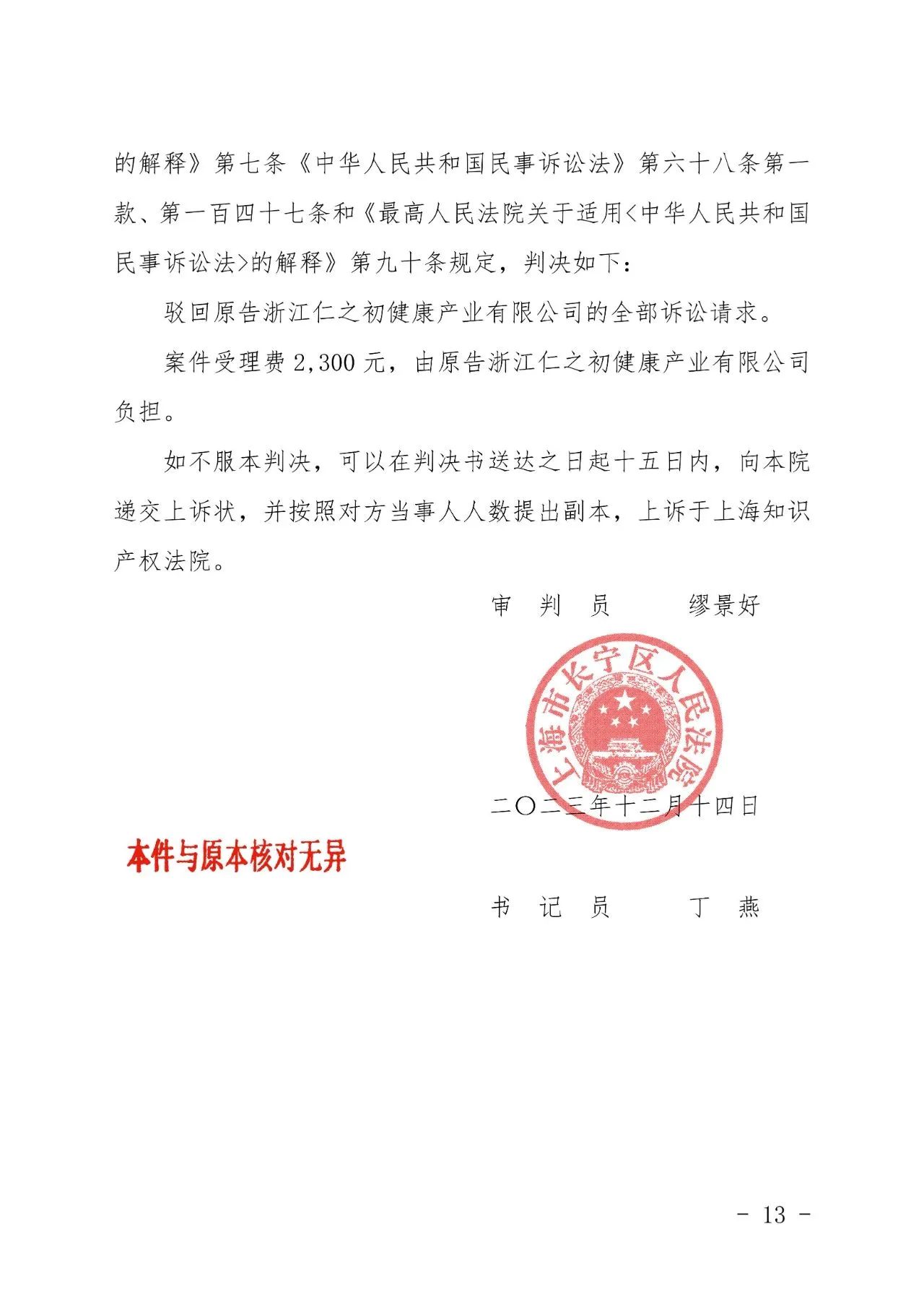来宾辉知胜诉佳讯 | “仁之初健康”著作权及不正当竞争纠纷案,法院:驳回全部诉讼请求!